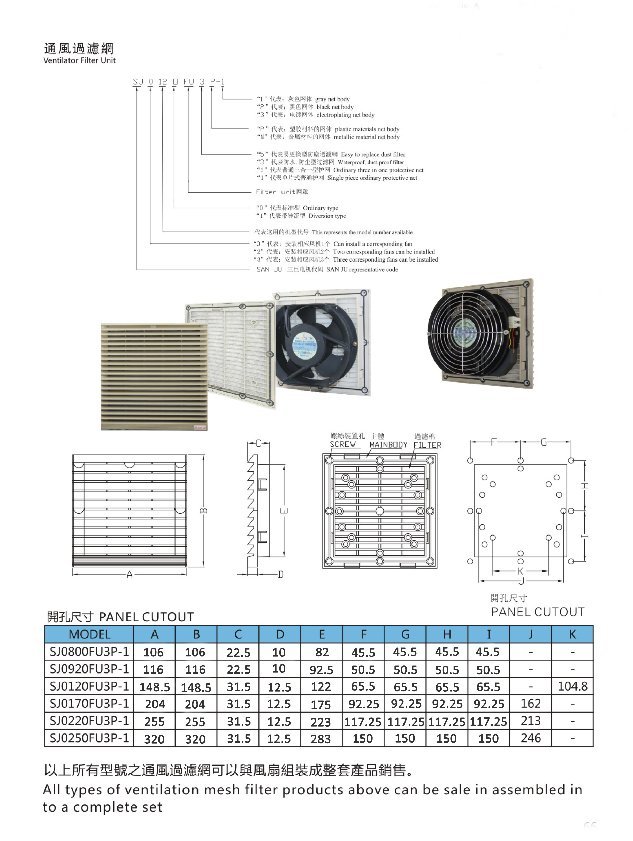所有型號通風(fēng)過(guò)濾網(wǎng)可以與風(fēng)扇組裝成整套產(chǎn)品銷(xiāo)售