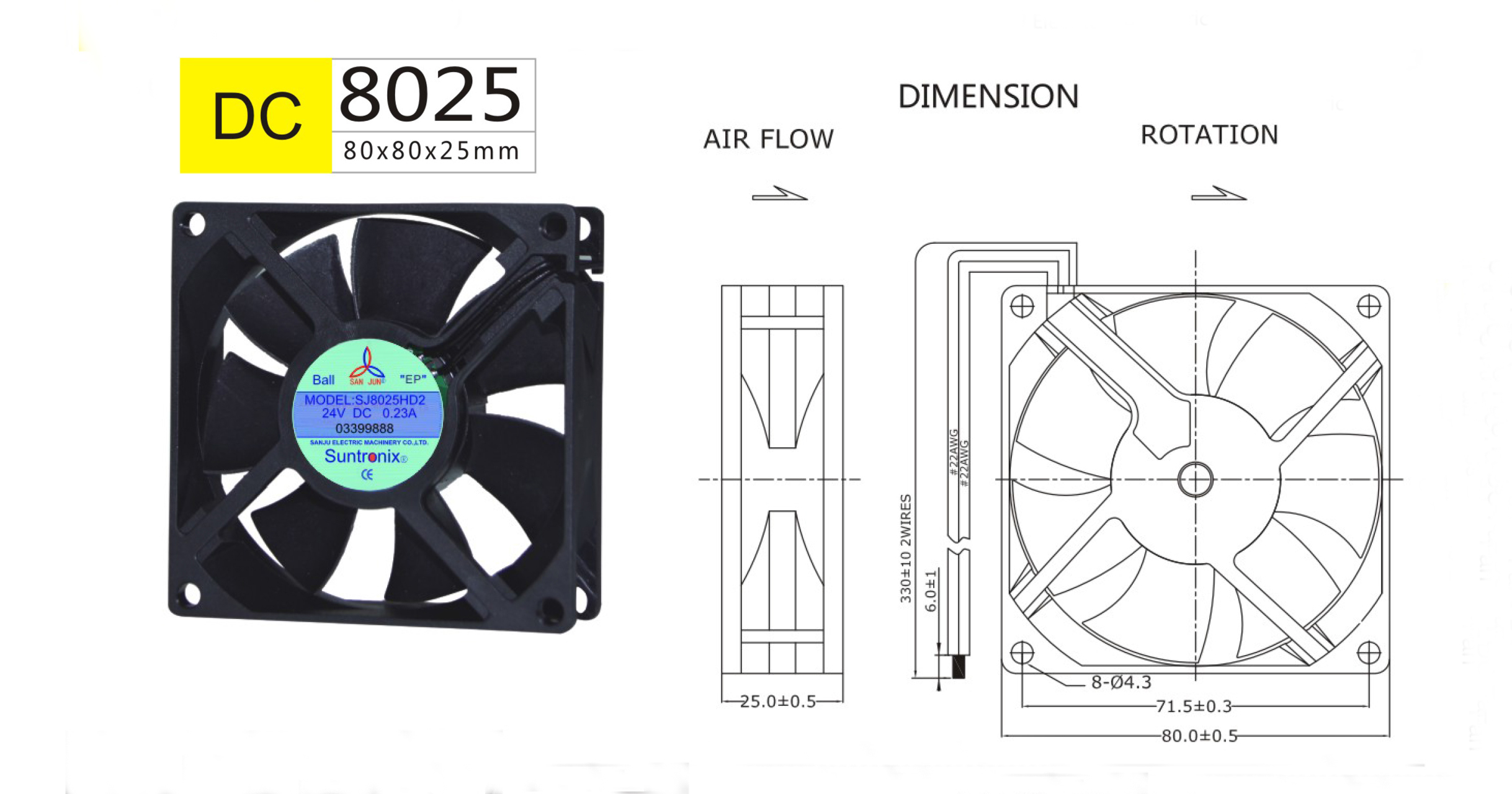 三巨電機散熱風(fēng)扇廠(chǎng)家專(zhuān)注如AC軸流風(fēng)扇,DC直流散熱風(fēng)機生產(chǎn)尺寸:80x80x25mm